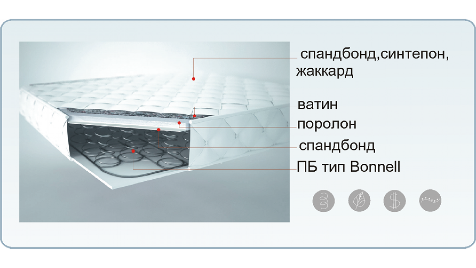 • Матрас предлагаемый в комплекте- классическая модель Боннель